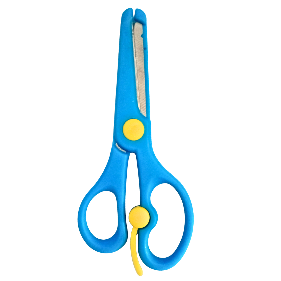 A tesoura com mola plastica facilita a a utilização por crianças em processo de desenvolvimento do controle motor.